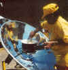 parabolic reflector enables a cook to be as close as possible to the cooking