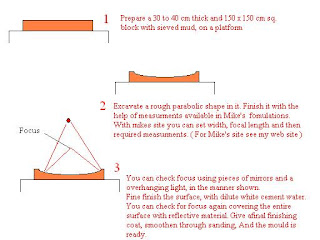 mud, and the reflector surface suitably smoothed with fine mud/cement and